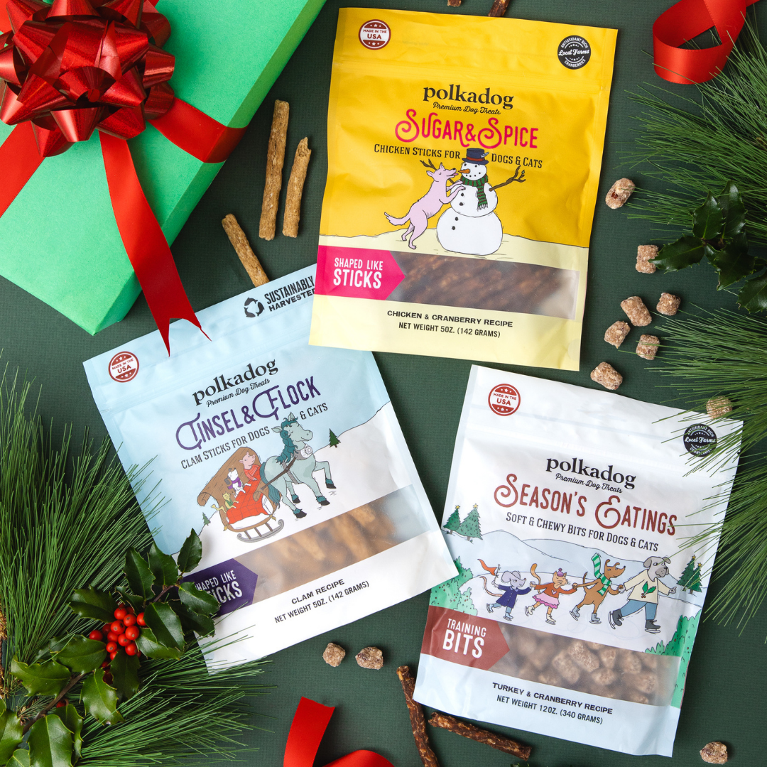 We got the Polkadog Clam Chowda treats while in the Adirondacks. Other than the fact they are very well made and with only 4 ingredients pretty healthy ingredients, and my dog loves them, I love the CRUNCH noise and the memory of being on Vacation! In fact I love them so much and went ahead and got larger sized bags on Polkadog.com: one for me and two to give to my dog owner friends during the holiday season!