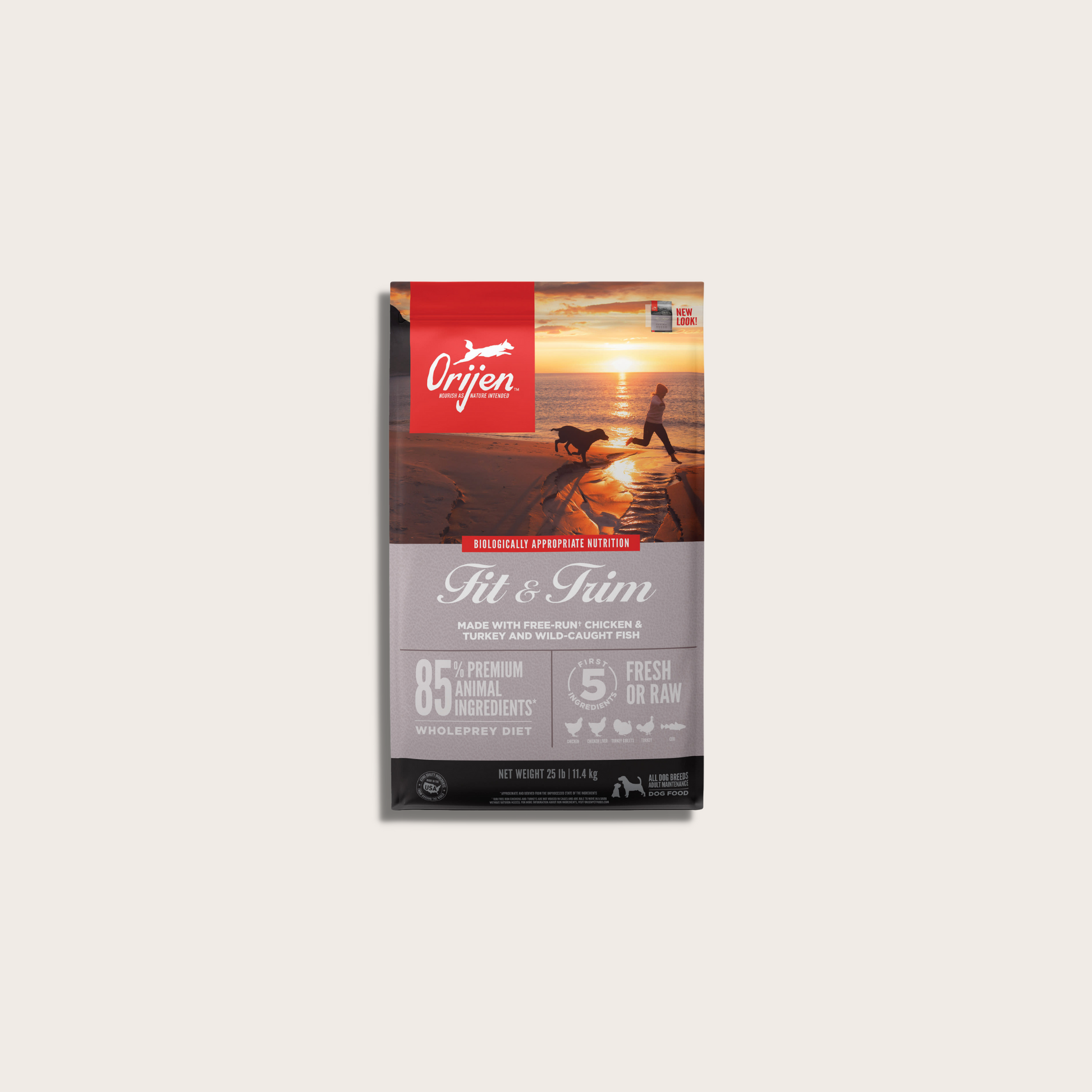 A diet rich in protein and fibre supports lean muscle mass while promoting peak conditioning and a healthy body weight. ORIJEN Fit & Trim has richly nourishing protein and 85% whole animal ingredients from free-run chicken and turkey, wild-caught fish, and cage-free eggs, all delivered to our kitchen. Two-thirds of our animal ingredients are FRESH or RAW, for a concentrated source of protein. Infusions of freeze-dried liver add a boost of flavour that your dog will love, while naturally providing the nutrients they require to help them stay happy, healthy, and thriving.